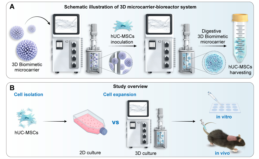本项研究中干细胞三维培养制备技术由中科睿极(海宁)生物科技有限公司提供支持,包括DASEA®生物智造平台的MSCs、DASEA® Ultramedia® Pro培养基、DASEA® Regencarrier® 仿生型微载体、裂解液、DASEA® Regenbio 全自动3D细胞培养系统等。
